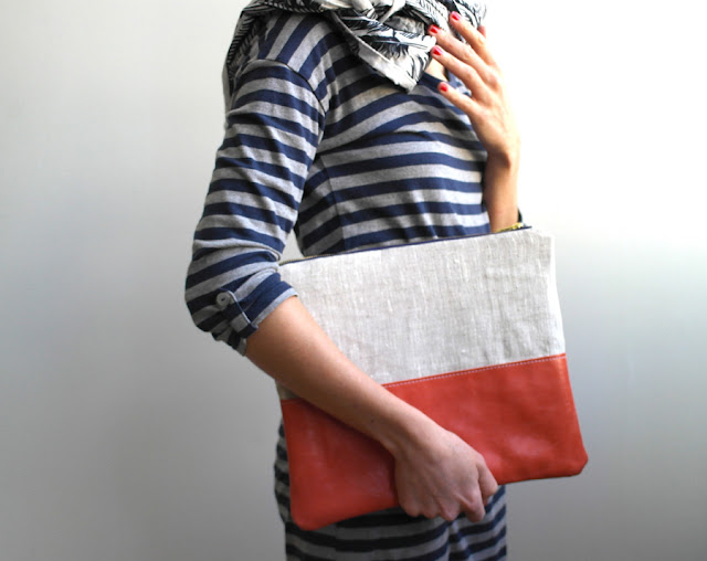 Leather Zipper Clutch in Red and Orange! I think I may have to keep one for myself.