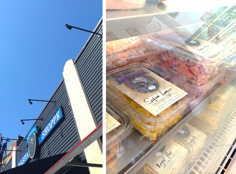 As part of our new weekend resolution to try something new, we found ourselves in the North End. It was my weekend to do the planning so I decided on forging for ingredients for dinner at DiPaquale's. They make fresh pasta daily and sell a variety of Italian deliciousness. We walked out with two types of fresh past for making this recipe, fresh burrata, italian coffee, and a can of San Pellegrino Aranciata Rossa (sparkling blood orange!) for instant gratification. We then venture over to this place for lunch alfresco. Before heading home we stopped at the Fiore roof deck for a bit of bubbly just because.